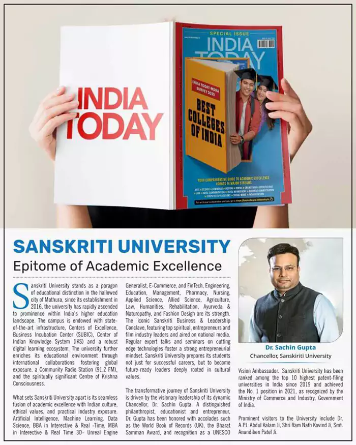 Sanskriti University has been honored with many awards and accolades for providing high-quality education, having very good infrastructure and research facilities, etc.